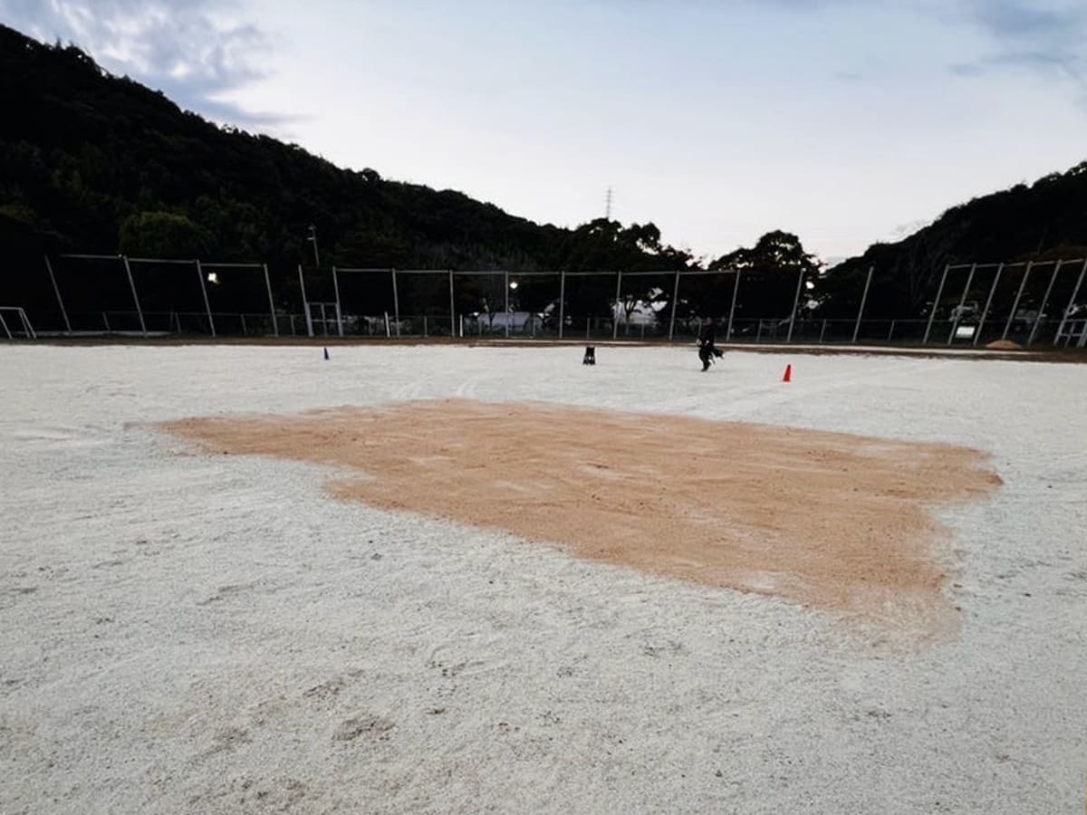 少年野球の利用者・公園管理会の方から「ベース付近に石が出ていて危険」とのご相談を受け、3年前に続き真砂土を補充。